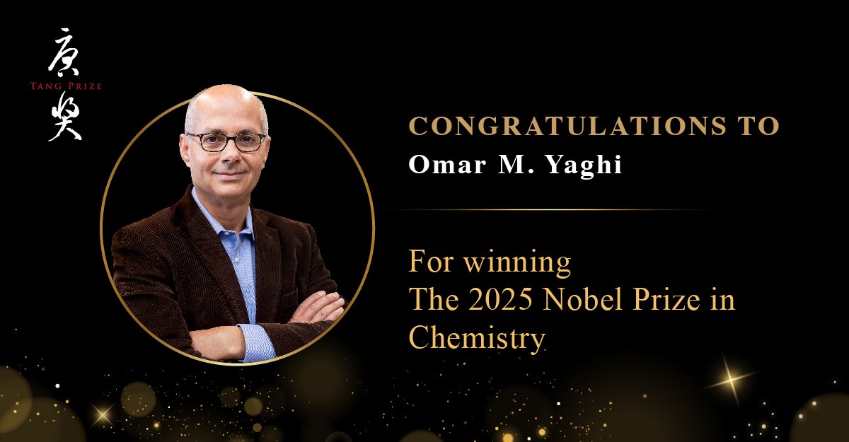 The 2025 Nobel Prize in Chemistry was announced today ( Oct. 8 ) at 5:45 PM Taiwan time. We are thrilled to announce that Prof. Omar M. Yaghi, the 2024 Tang Prize Laureate in Sustainable Development, along with Prof. Susumu Kitagawa (Japan) and Prof. Richard Robson (Australia), have been awarded this prestigious honor for their groundbreaking research in Metal-Organic Frameworks (MOFs).